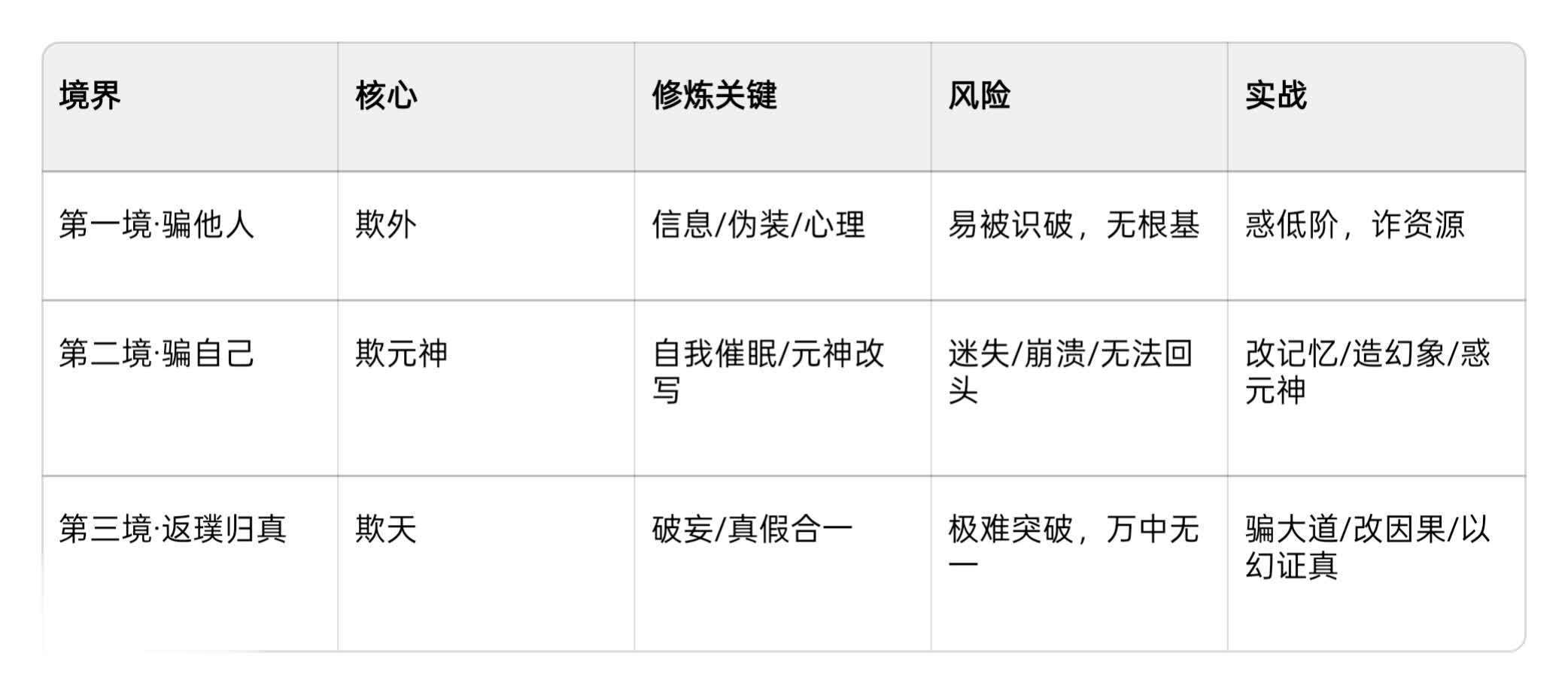 一、第一境:骗他人(下境·欺外)