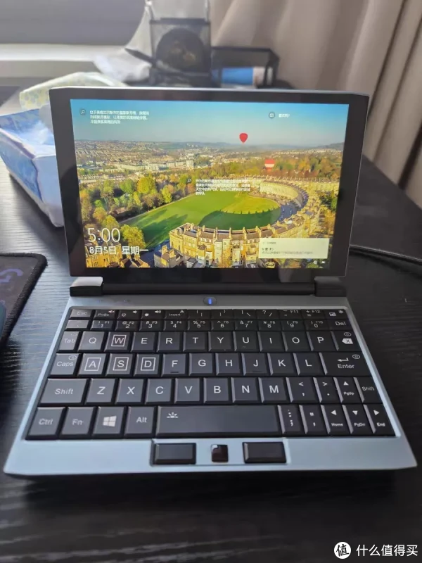 这款电脑的体积合起来只有半张A4纸大小,非常的小巧,可以轻松放入口袋中,是真正意义上的“口袋电脑”,屏幕采用的是一块7英寸IPS触控屏,分辨率1920*1200,和大屏手机的屏幕差不多大小,显示效果还不错,只是运行电脑系统有点点费眼睛。
