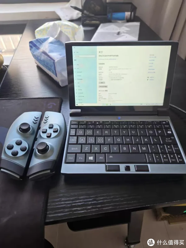 这款口袋电脑虽然号称是“口袋式二合一笔记本”,但我觉得更像是多合一笔记本,它不光能在传统笔记本和平板之间转换,还附赠了两个可拆卸的原机无线游戏手柄,可以通过卡扣与主机本体连接,直接就化身为游戏掌机了,这东西安装一个模拟器,玩个掌机游戏还是不错的。
